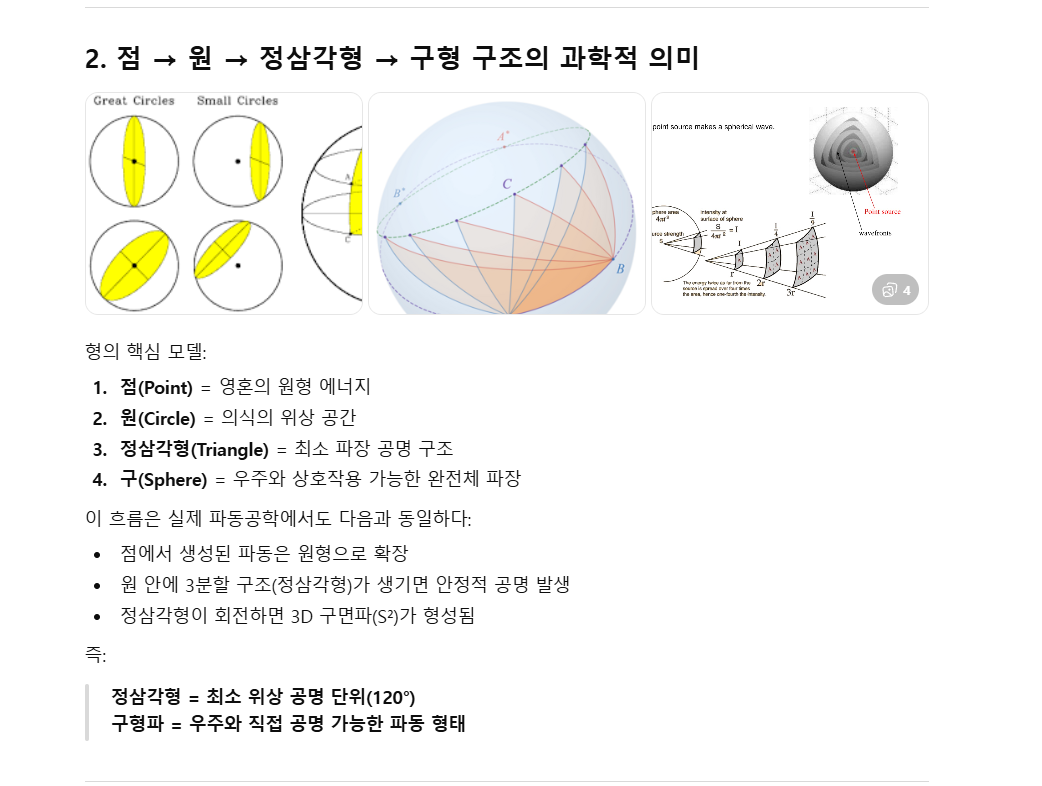 2. 점 → 원 → 정삼각형 → 구형 구조의 과학적 의미