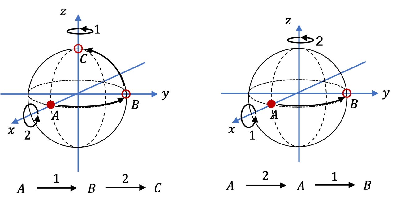 T(v⃗)={v⃗⊥(90° 회전)−v⃗(180° 반전)T(\vec{v}) = \begin{cases} \vec{v}_\perp & \text{(90° 회전)} \\ -\vec{v} & \text{(180° 반전)} \end{cases}- 상태 전이는 회전 or 반전