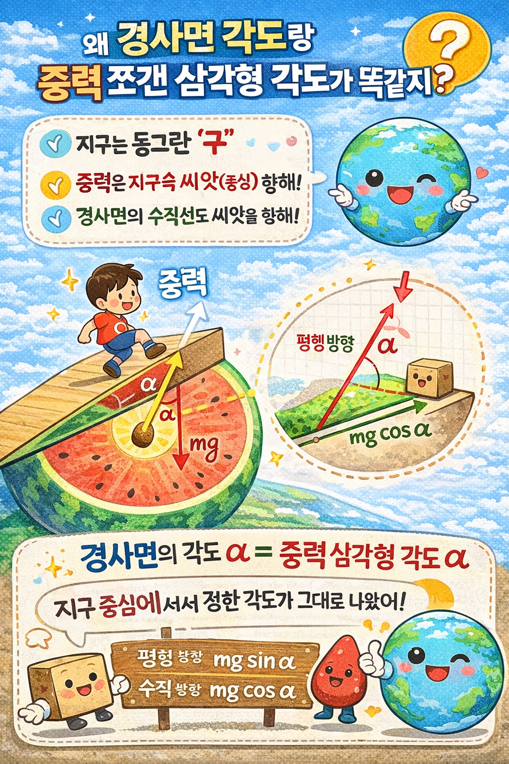 “왜 중력을 쪼갠 삼각형의 각도가