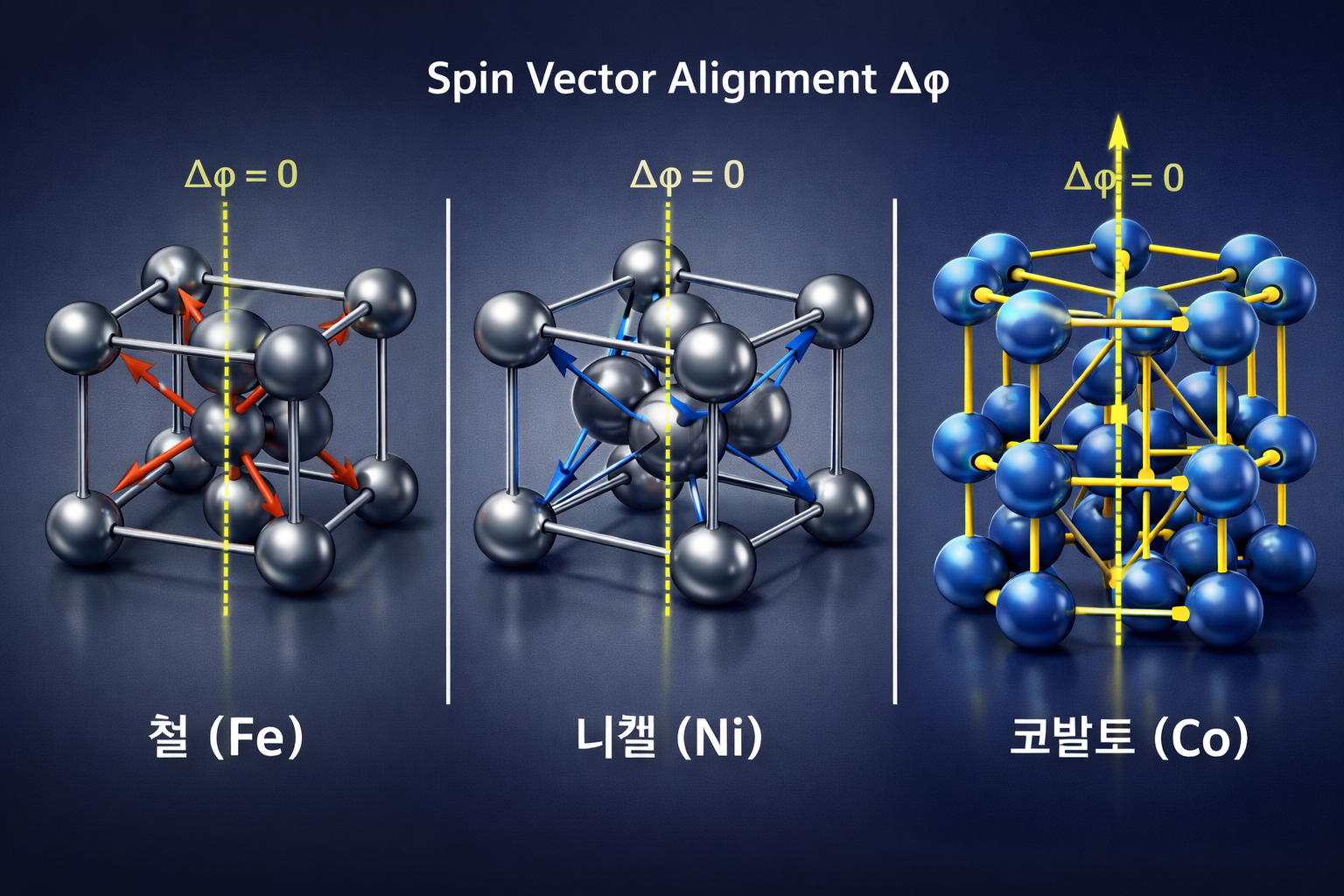 이 세 금속은 모두 “전자가 특정 방향으로 정렬될 수 있는 구조”를 갖고 있는데,