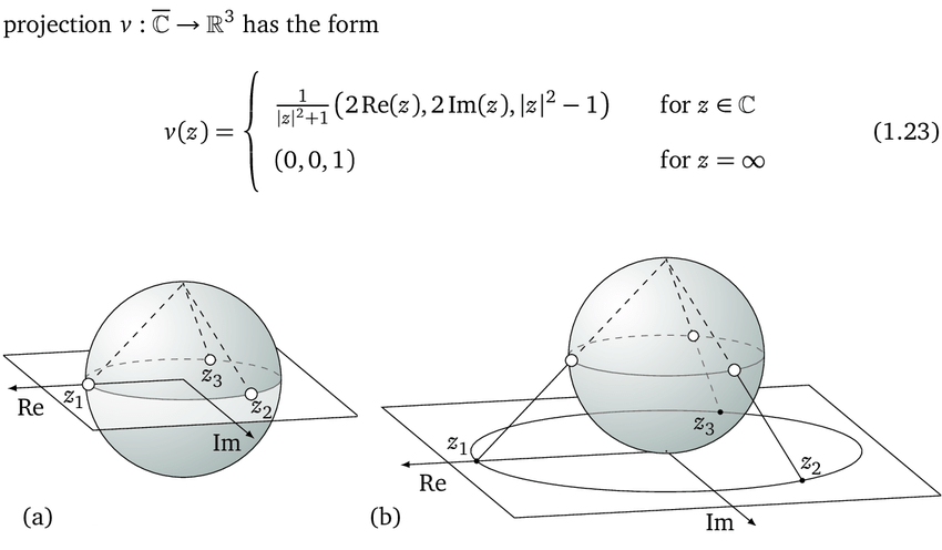 복소수 전체를 하나의 구에 대응시키는 아름다운 구조이다.