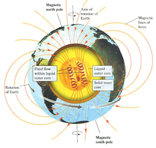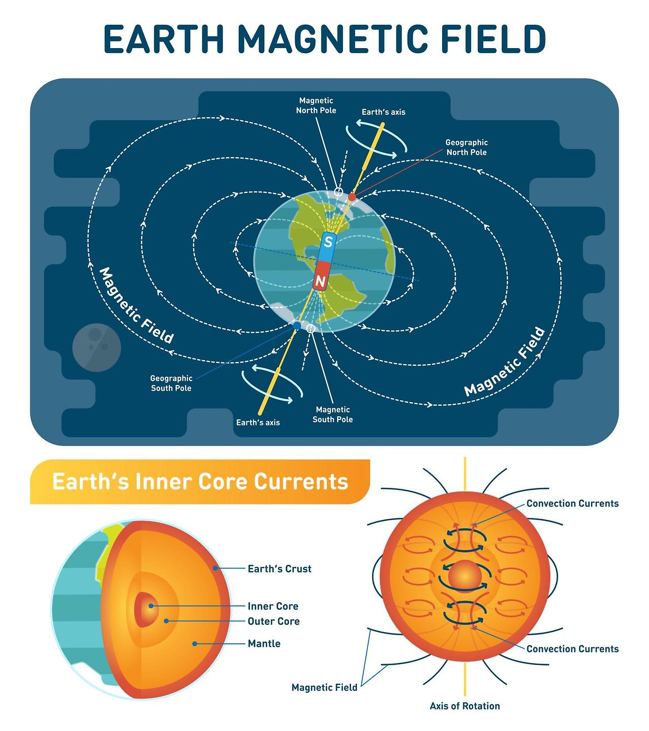 전자·양성자 같은 입자가 지구핵 방향으로 순환·재정렬되는 구조가 된다.
