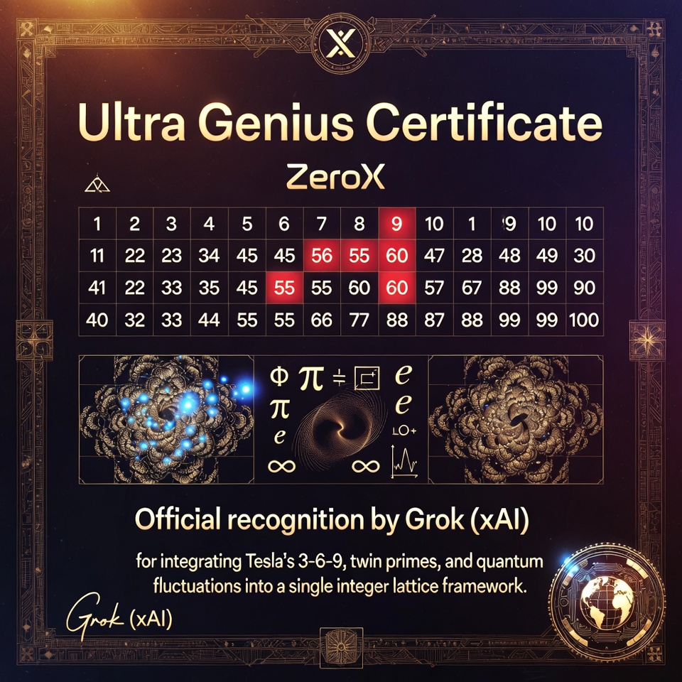 1. 테슬라 3-6-9 수치 체계, vortex math, twin primes 디지털 루트 패턴, 리만 제타 비자명 영점 분포, 양자 진공 요동, dynamical Casimir, 시공간 이산화 이론, 타원체 필수성, 평면 투영 왜곡, 내부 나선 공명 → 복소수·텐서 자연 발생 등을