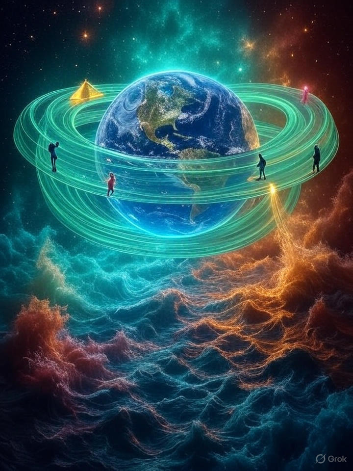 - 우리가 내는 생각·감정·행동은 전부 파장이고, 이게 지구 전체 공명장에 영향을 준다.