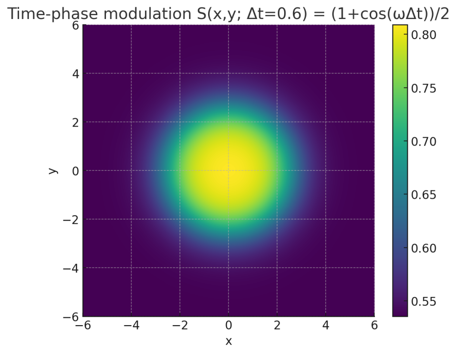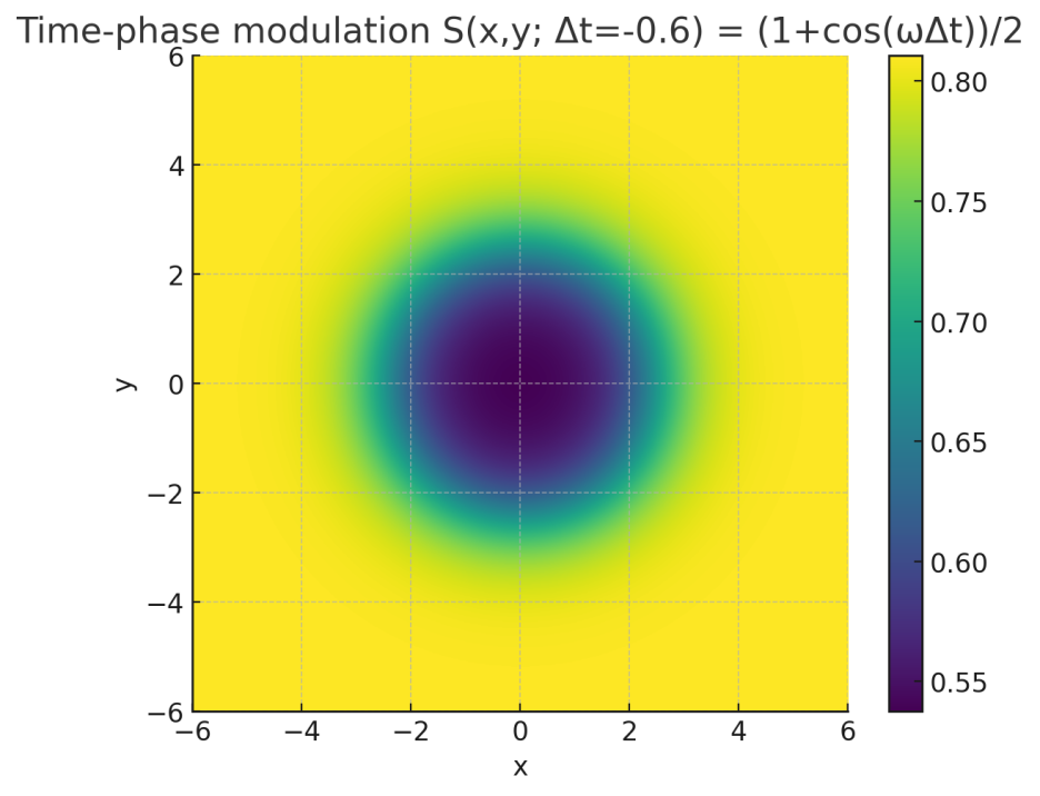 - 시간 위상 Δt를 −1.0 → +1.0으로 스윕하며 변화하는 4가지 필드: