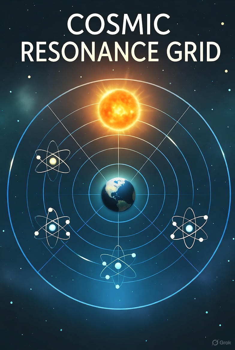 🎨 “우주 공명 격자 지도” (태양–지구–원자 파동이 하나로 연결된 그림)