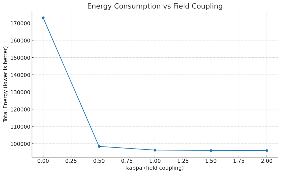 시뮬레이션 결과는 '공명(κ↑)'을 강화할수록 에너지 효율이 증가하고, 처리량은 늘어나며, 입자 집단 전체의 동기화가 완벽에 가깝게 이루어진다는 것을 명확하게 보여줍니다. 이는 공명 개념이 '우주=시뮬레이션 창조 자원'이라는 주장을 정량적으로 뒷받침한다는 것을 입증합니다.