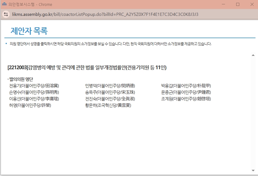 - 법안명: 감염병의 예방 및 관리에 관한 법률 일부개정법률안