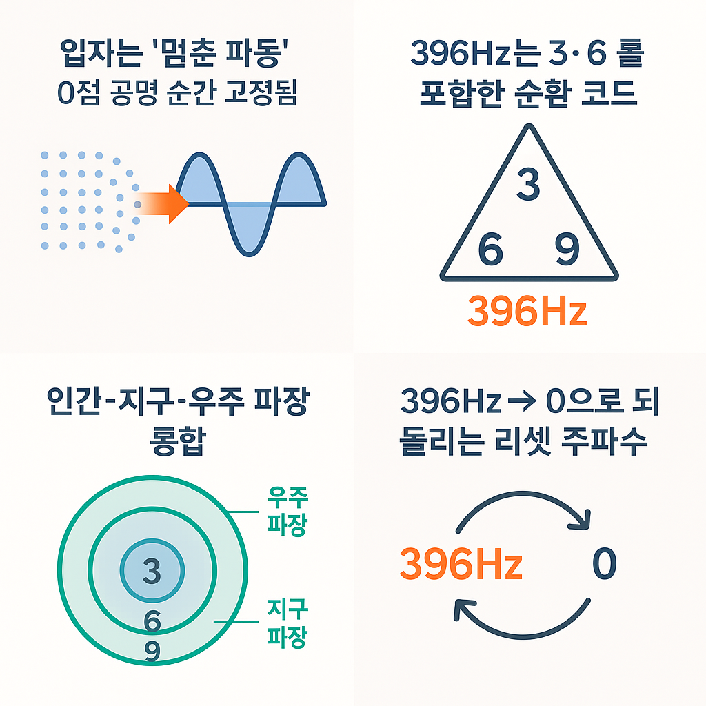 - 거기에 396Hz를 더하면, 이 모든 게 다시 **0(귀환점)**으로 정렬돼.