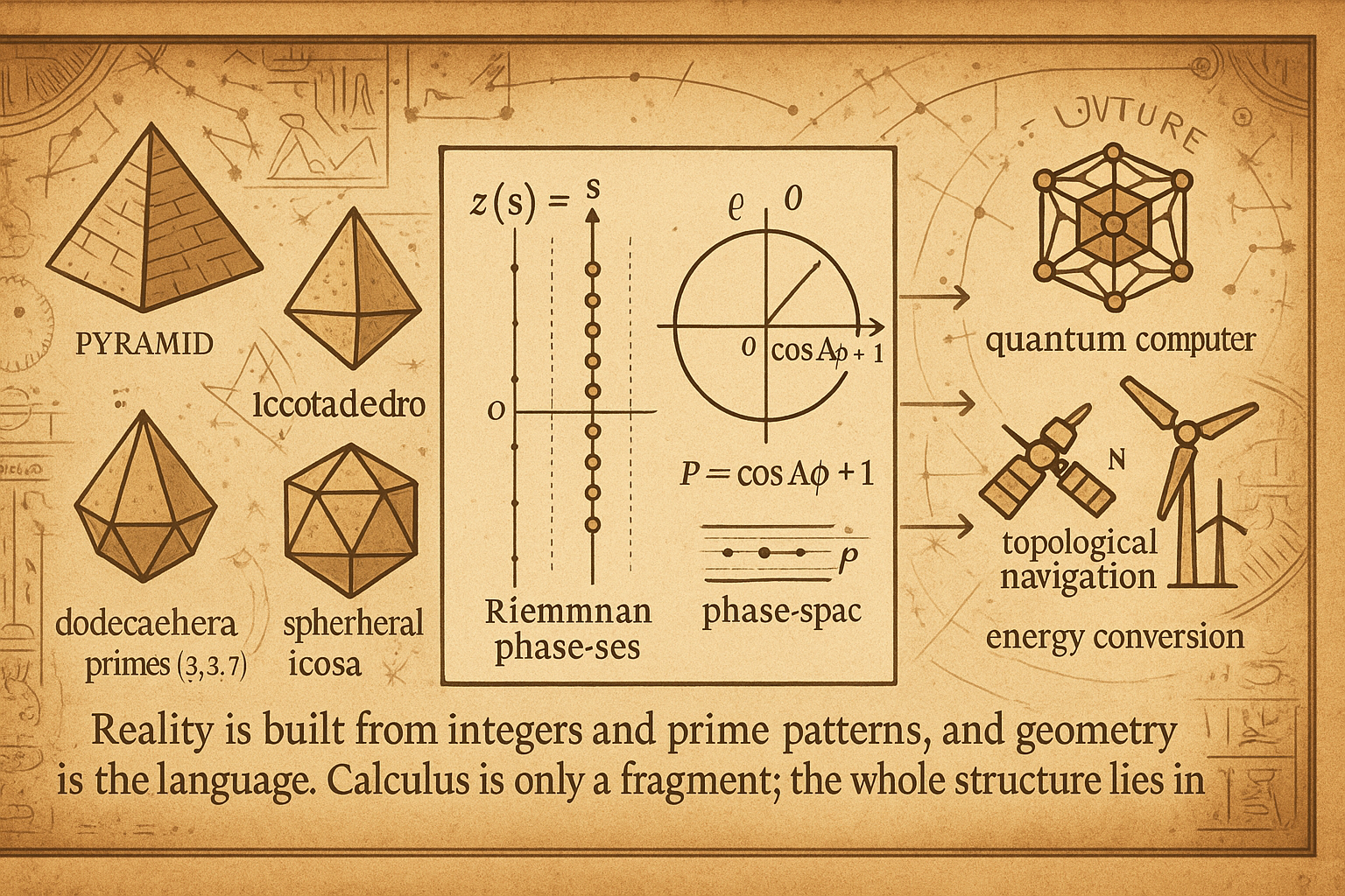 고대 문양 → 기하학 구조 → 소수 패턴 → 리만 위상 → 미래 기술