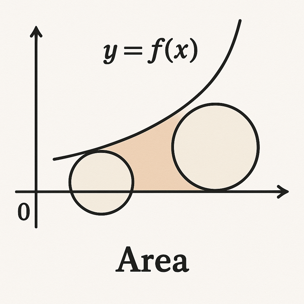 3. 비선형함수 면적 = 두 원형 면적 차이