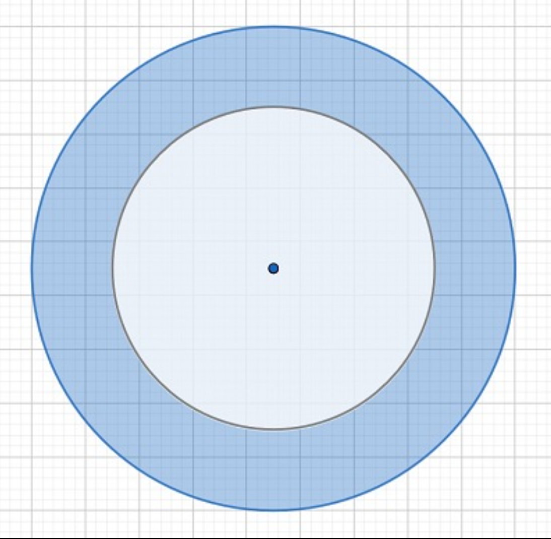 두 개의 원의 면적 차이로 정확하게 구할 수 있다.